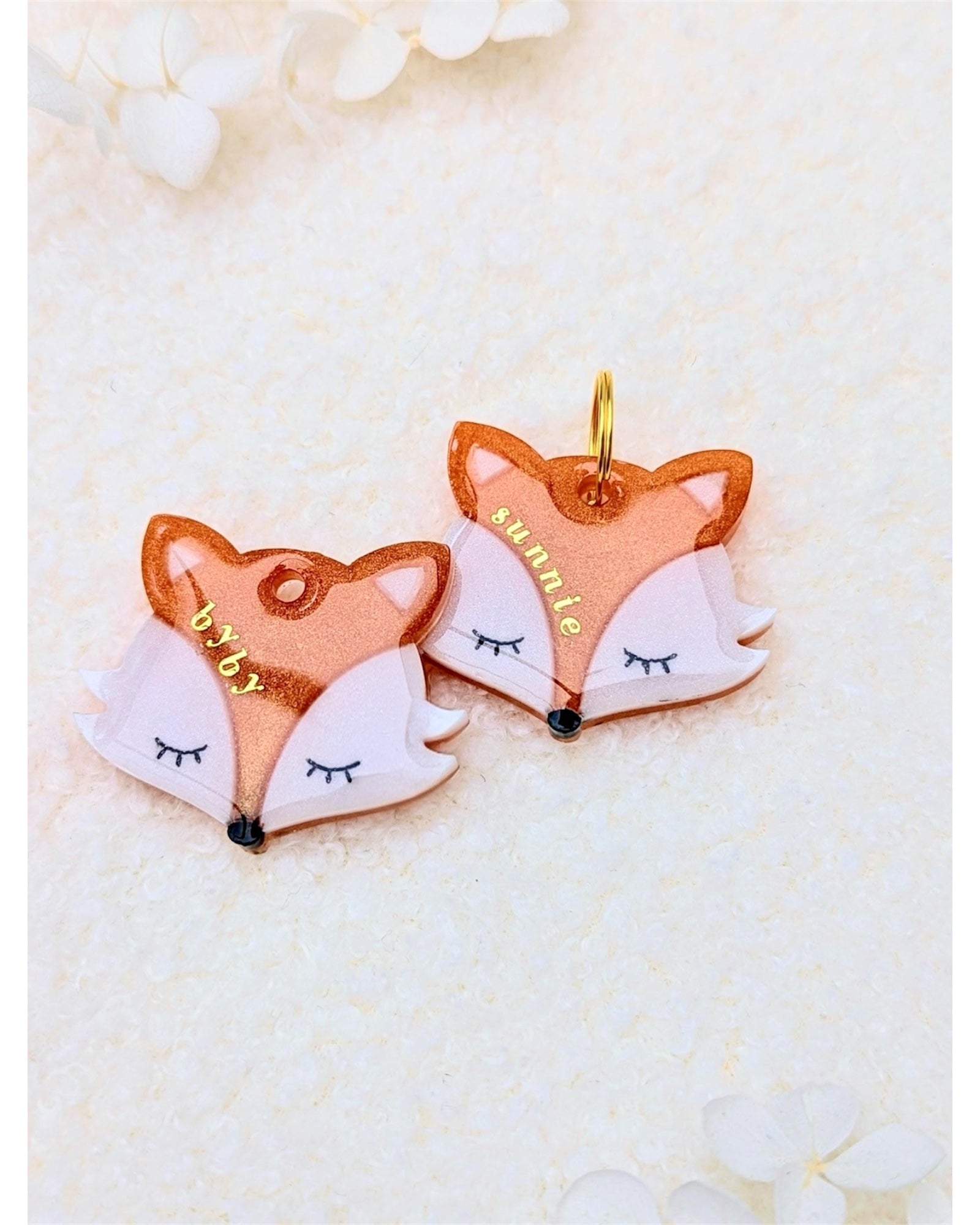 - ou une mĂ©daille en rĂ©sine renard, entiĂšrement faite Ă la main, pour une touche dâautomne jusque sur son collier.Â