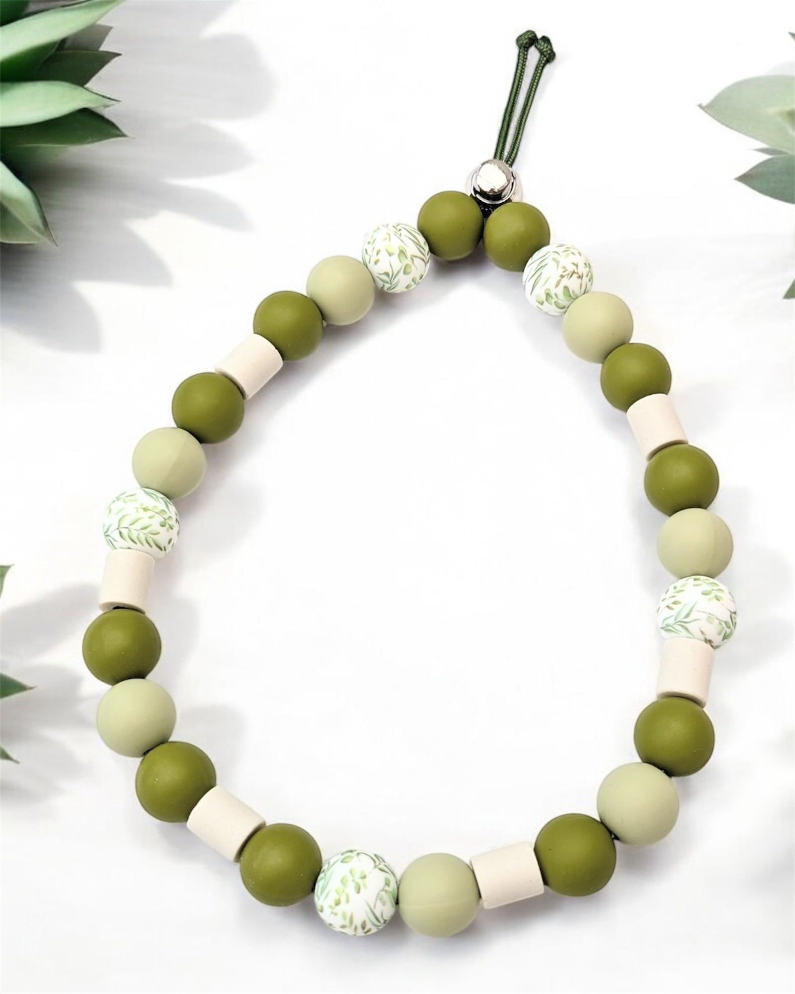 Offrez à votre chien une protection naturelle contre les tiques avec notre collier “Émeraude Sauvage”. Fait à la main avec soin, ce collier en dégradé de vert est orné de délicates perles et de motifs feuillagés, rappelant la beauté de la nature.