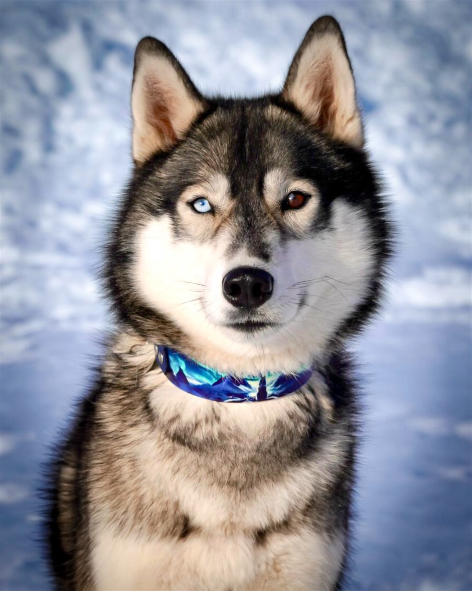 Son design fort et raffiné met en scène des montagnes enneigées illuminées par des aurores boréales, une lune étincelante et, au centre, un chien-loup faisant face à l’horizon, symbole de liberté et de puissance.