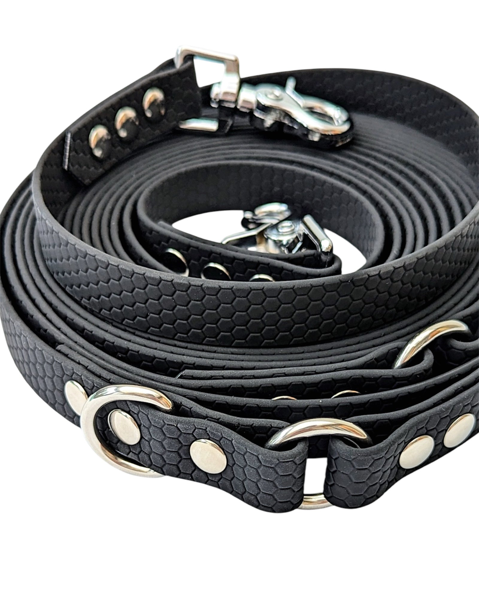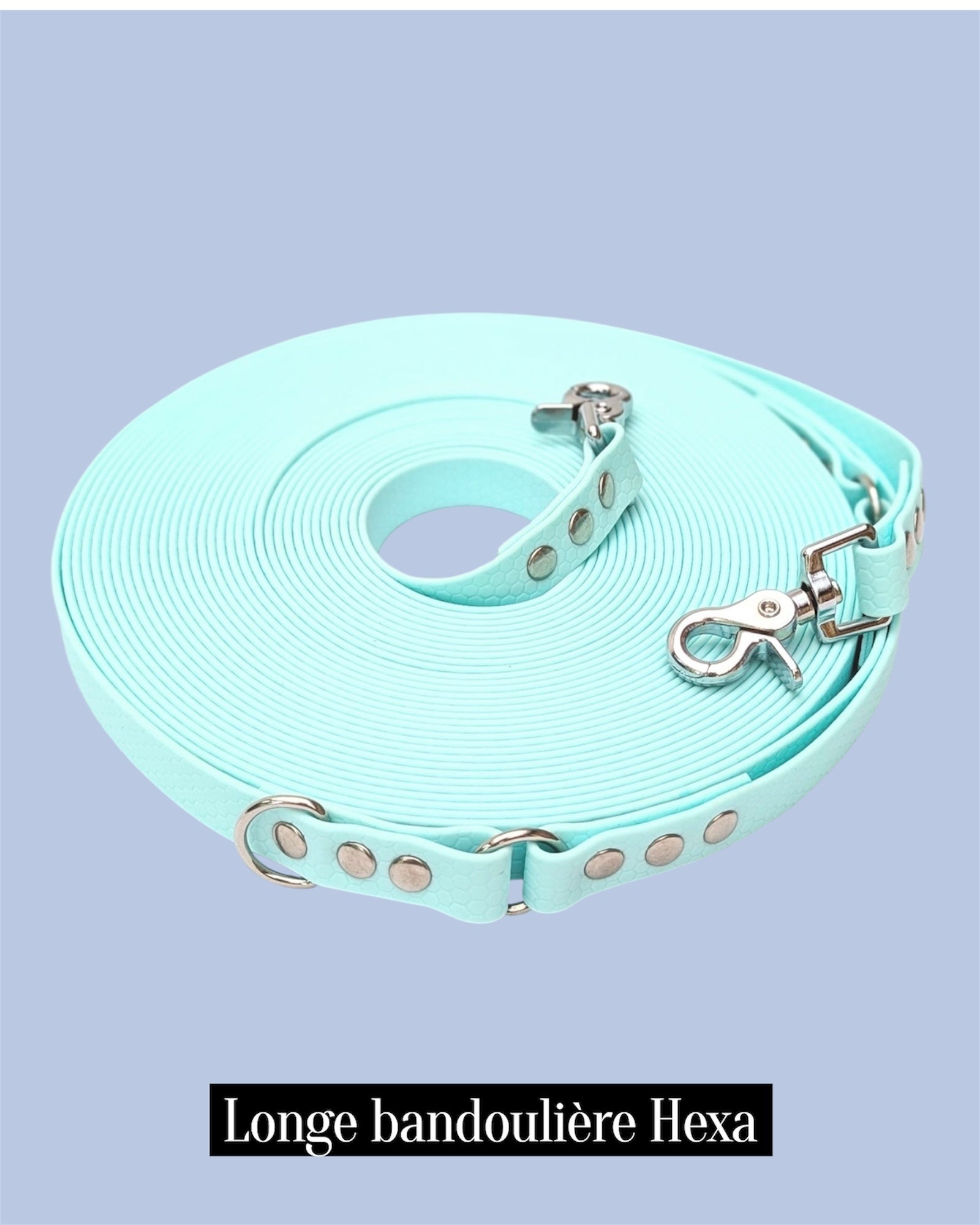 Découvrez notre longe pour chien en bandoulière : Faite en sangle HEXA et assemblée à la main cette longe est l’alliance parfaite entre praticité et style.