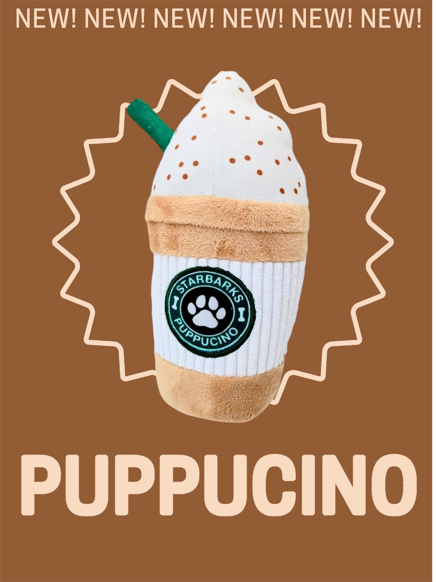Un café pour vous, un Puppicino pour lui ! Peluches fun et couineuses aux looks gourmands, parfaites pour des moments de jeu pleins de saveur! Parce que votre toutou mérite aussi sa pause café !