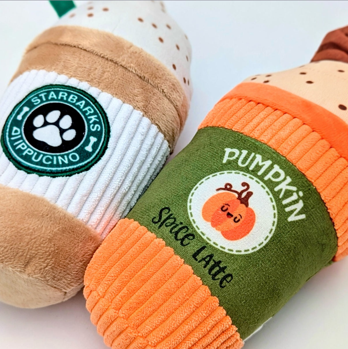 Ces peluches adorables en forme de Puppicino et de Pumpkin Spice Latte vont faire craquer chiens et maîtres. Avec leur look inspiré des boissons tendance et leur couineur intégré, elles garantissent des heures de jeu fun et des séances câlines gourmandes.