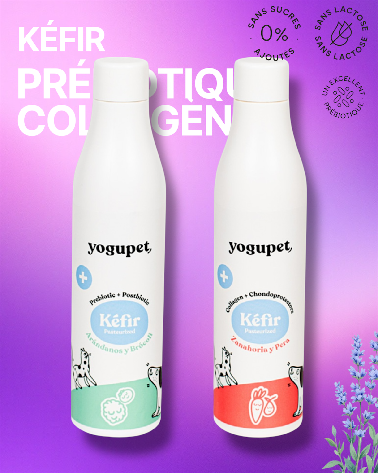Complément alimentaire pour chiens et chats Yogupet kéfir est un kéfir pasteurisé pensé pour compléterle régime alimentaire de notre animal de compagnie de façon saine avec tous les bénéfices du kéfir.