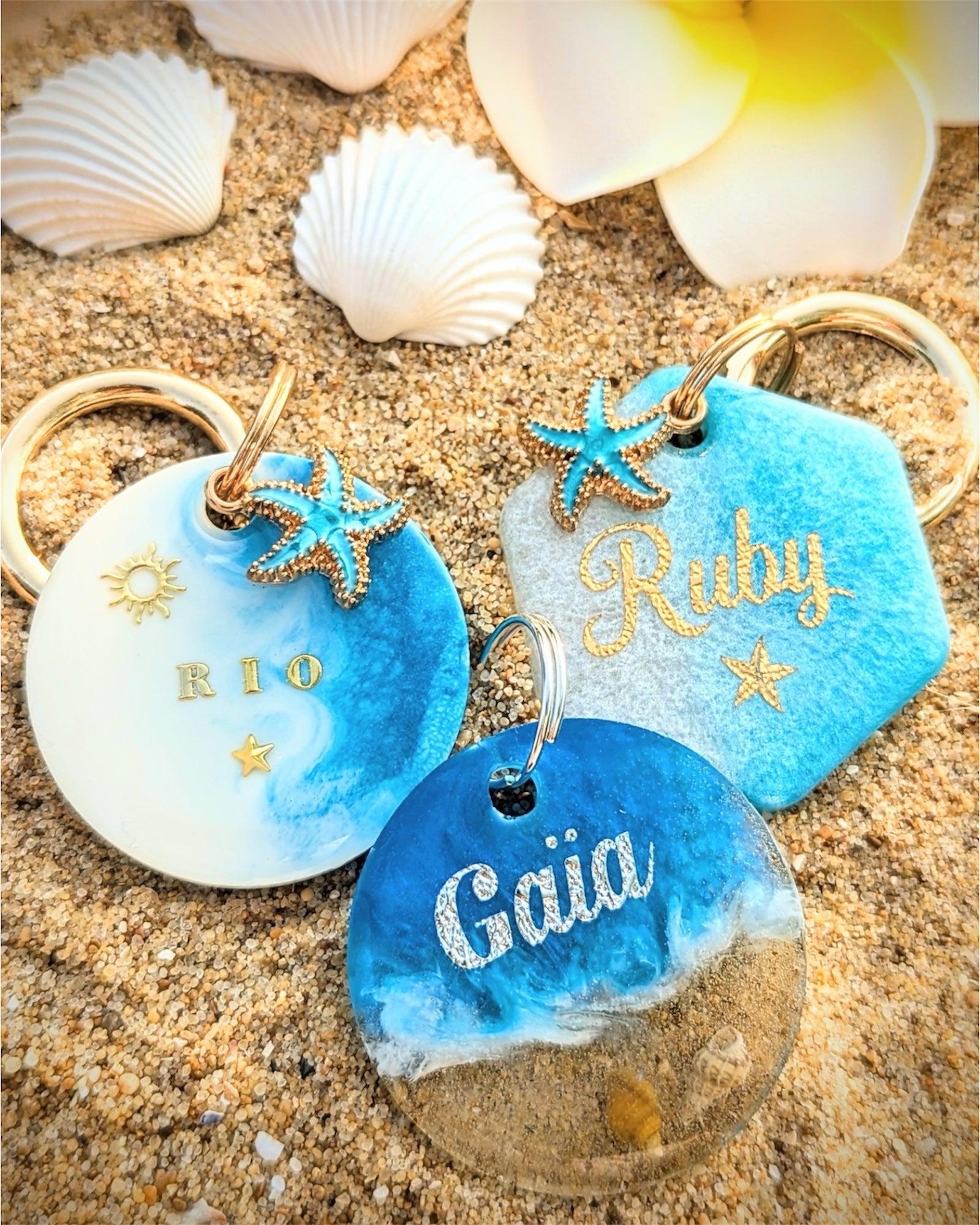 Emmenez un morceau d’océan partout avec vous grâce à cette médaille pour chien faite main.