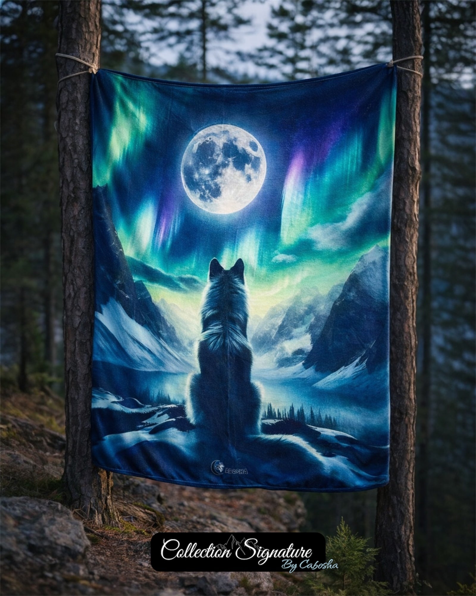 Reprenant le motif iconique du collier et de la médaille Signature : paysages nordiques et loup emblématique, ce plaid tout doux au visuel glacial et sauvage est pourtant pensé pour tenir bien chaud. À utiliser aussi bien pour vous que pour votre chien : sur le canapé, en coin repos ou après une sortie hivernale. Le contraste parfait entre l’esprit du Nord et le confort cocooning ❄️🔥